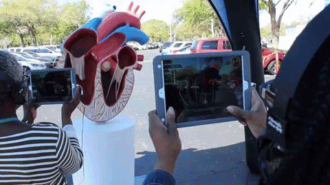 Players participate in a 90 second animated augmented reality race, tracked to a custom fabricated 7' physical heart and stand. Throughout the race, players collect heart-healthy tips and compete against other players to cross the finish line first.